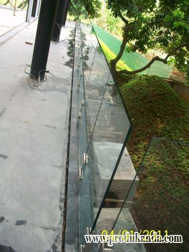 railing kaca tempered dengan fitting stainless steel. bisa digunakan untuk pengaman pembatas balkon, railing tangga atau variasi. terbuat dari kaca tempered yang tidak berbahaya jika terjadi pecah, karena akan menjadi butiran sebesar biji jagung jika terjadi pecah. dipegang oleh fitting stainless steel yang tahan karat.