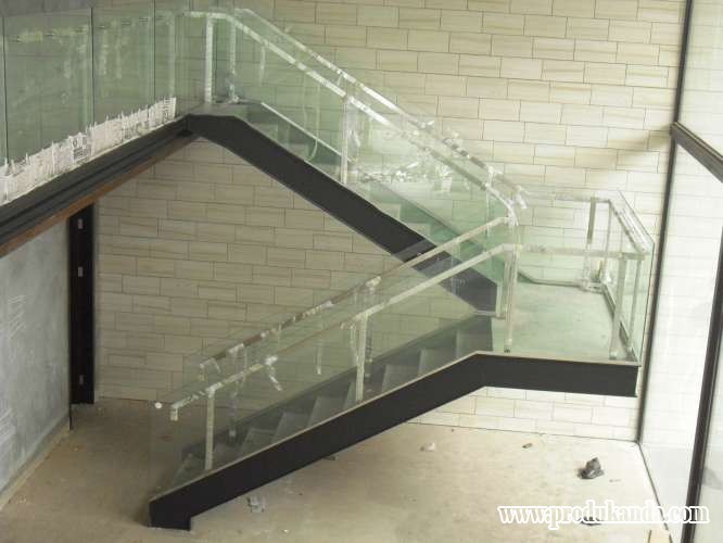 railing tangga kaca dengan handrail stainless stell hollow finish hairline